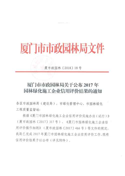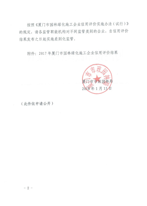 關(guān)于公布2017年園林綠化施工企業(yè)信用評(píng)價(jià)結(jié)果的通知-2